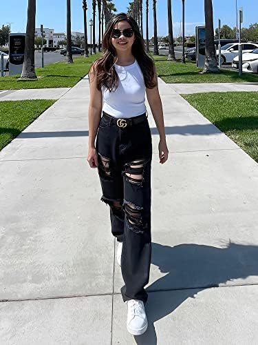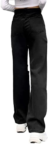 Trousers Feature:High waist ripped jeans with five functional pockets, slim high waist, easy open zipper fly,distressed holes worn knees,fray hem design add a little fun to wide leg jeans