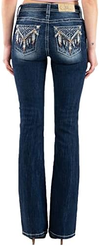 Show off your lucid style in this pair of bootcut jeans detailed with a studded dream catcher embroidered back pocket, fading, contrast stitching and a 5-pocket design.