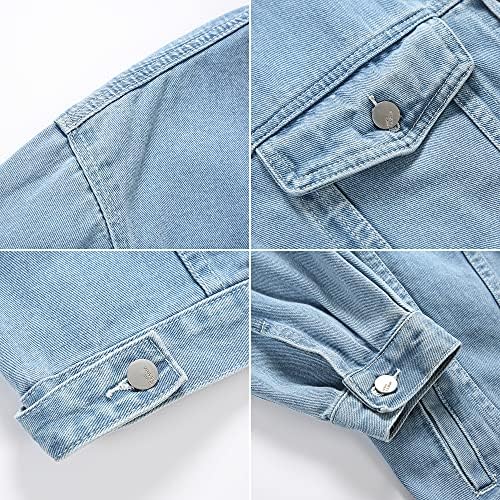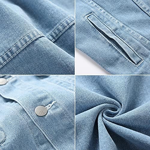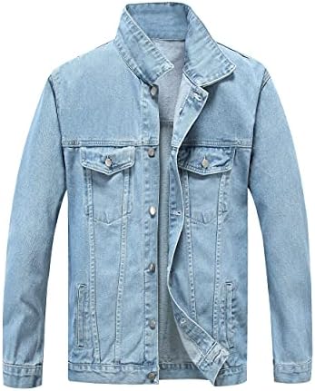 PRIJOUHE Mens Jean Jacket Classic Casual Loose Fit Button Down Denim Jacket Coat